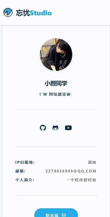 | social: - name: Github icon: fab fa-github url: https://github.com/Yan-Tongxue - name: Gitee icon: fab fa-github-alt url: https://gitee.com/WY-Studio - name: TikTok icon: fab fa-youtube url: https://www.douyin.com/user/MS4wLjABAAAADXge-FYlT6XAU_IyLCZfNS5Q6EUmyzohrwBgqIkwxNM