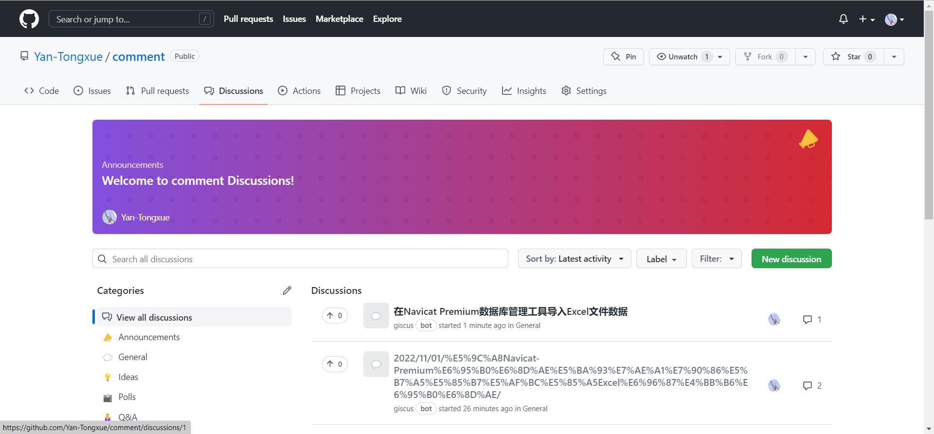 这是由 GitHub Discussions 驱动的评论系统,让访客借助 GitHub 在网站上留下评论和反应。