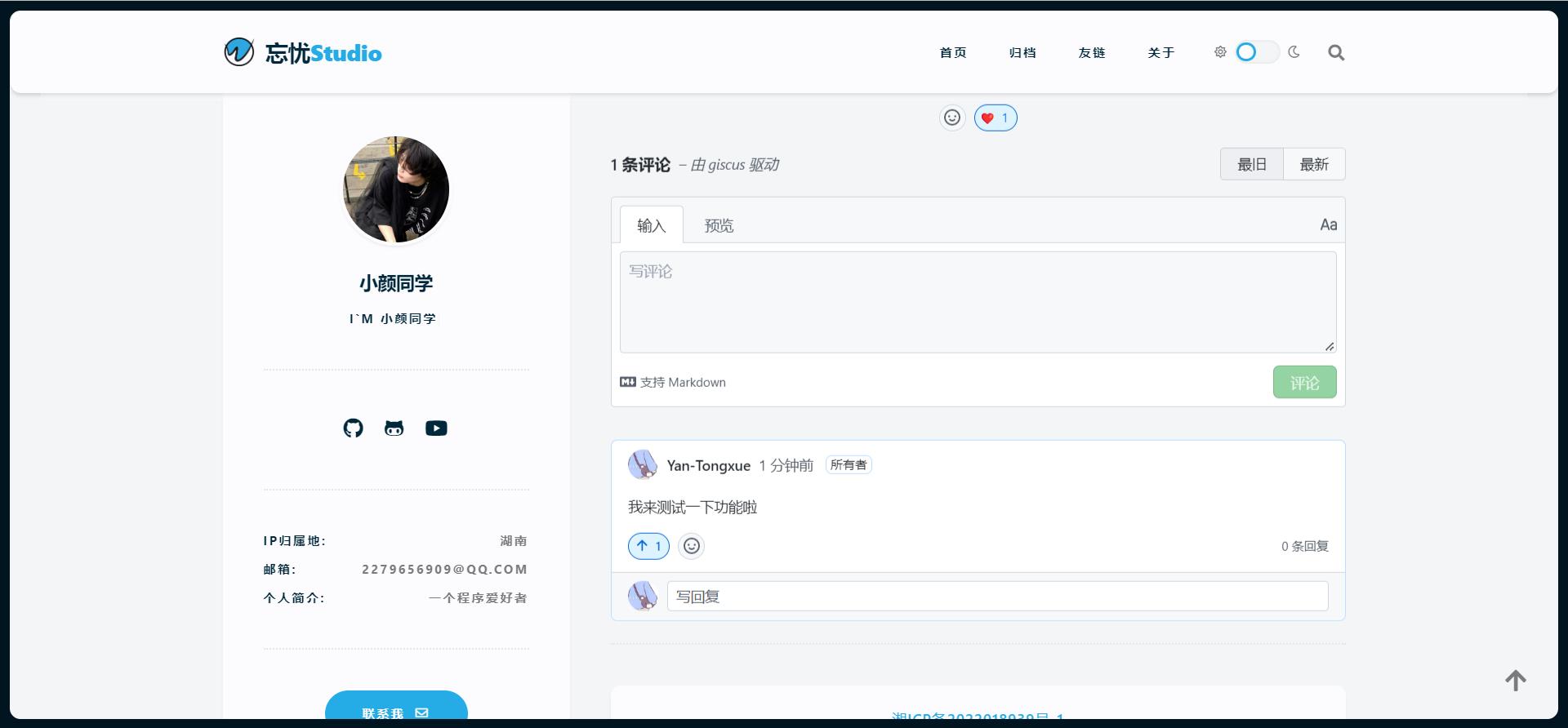 那么访客评论后是推送到Github的Yan-Tongxue/comment储存库,我将储存库可见性设为公共的,另外在每位访客评论之后会发邮箱通知到我的账户里,这样也能方便及时看到大家的评论。